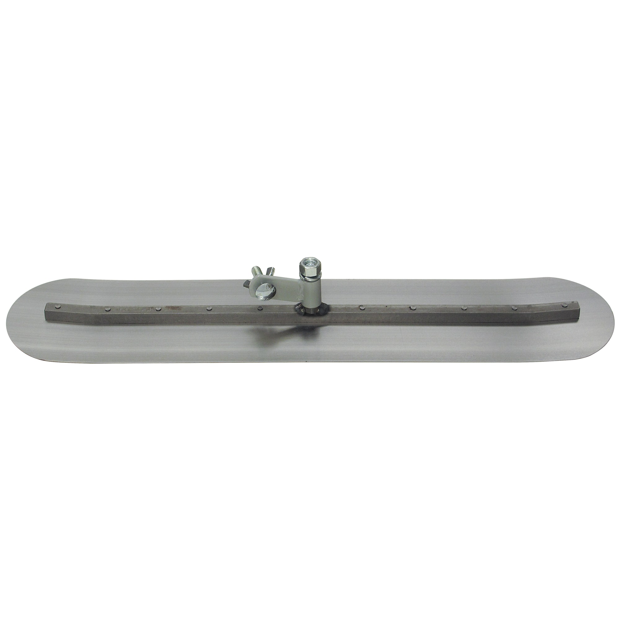 Extra tough fresno for working in rough gunite and shotcrete material. A 24" high quality carbon blade on a steel mounting to the same high quality specifications of the typical Kraft Tool Co.® fresno. The 21" square mounting extends the length of the blade to provide reinforced support of the 5" wide blade. The rivets on the mounting are left unground for additional strength in rough material. The rounded ends are raised to prevent scoring of the surface. Swivel bracket rotates 360° and can be locked into any angle. Use with clevis handles (sold separately). Use with handle adapters for use with bull float extension handles.
