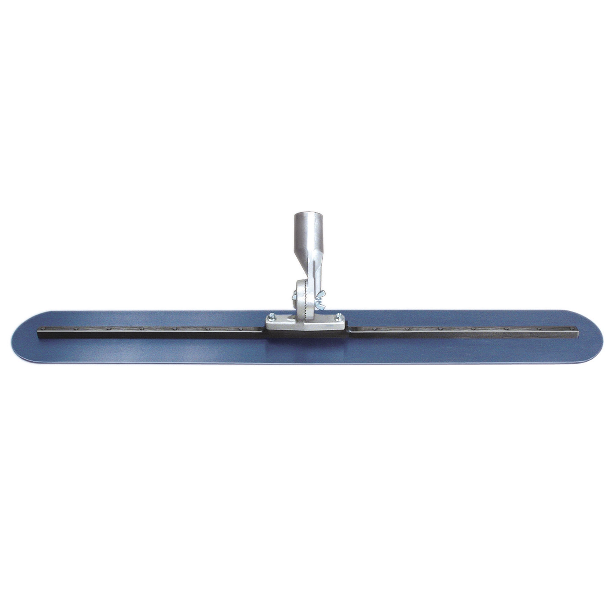 This 2-1/2' fresno trowel is made with high quality, flexible blue steel for a perfect finish. Use this quality fresno to finish concrete to a smooth, hard surface. Round ends on the 5" blade eliminate gouging of concrete for a smooth finish. A 27" long 1/2" square steel mounting is centered on the 30" blade to help keep the trowel flat. A strong cast aluminum bracket is attached to the fresno. Uniquely designed bracket has teeth to keep handle at set angle without slippage. Single tilt bracket moves handle 180 degrees for back and forth movements. Use with threaded bull float handle. Other 2-hole fresno brackets can be used, if desired. Attach one or more groover bits (sold separately) to turn this tool into a groover for more versatility.