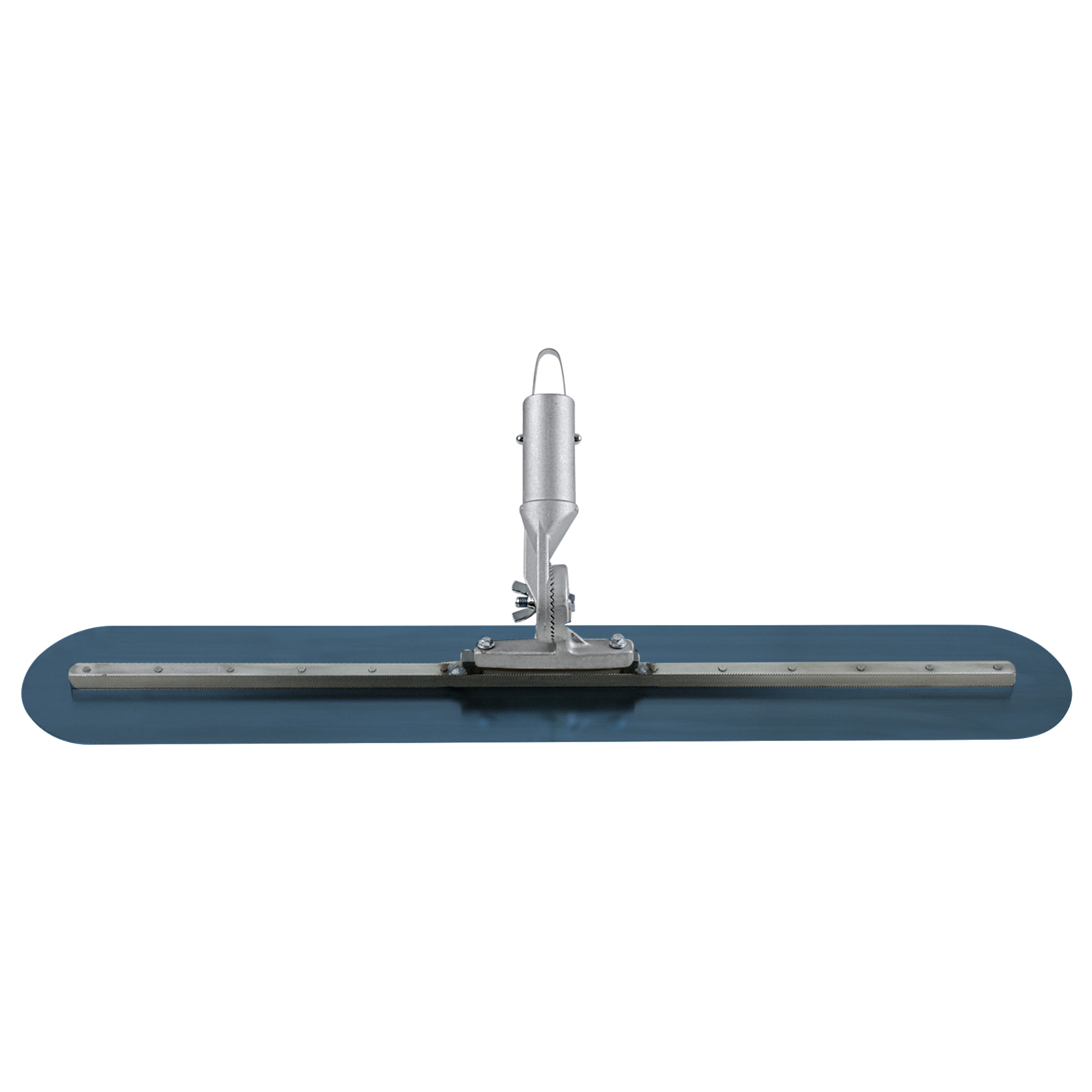This 3-1/2' fresno trowel is made with high quality, flexible blue steel for a perfect finish. Use this quality fresno to finish concrete to a smooth, hard surface. Round ends on the 5" blade eliminate gouging of concrete for a smooth finish. A 39" long 1/2" square steel mounting is centered on the 42" blade to help keep the trowel flat. A strong cast aluminum bracket is attached to the fresno. Uniquely designed bracket has teeth to keep handle at set angle without slippage. Single tilt bracket moves handle 180 degrees for back and forth movements. Use with 1-3/8" or 1-3/4" button bull float handle. Other 2-hole fresno brackets can be used, if desired. Attach one or more groover bits (sold separately) to turn this tool into a groover for more versatility.