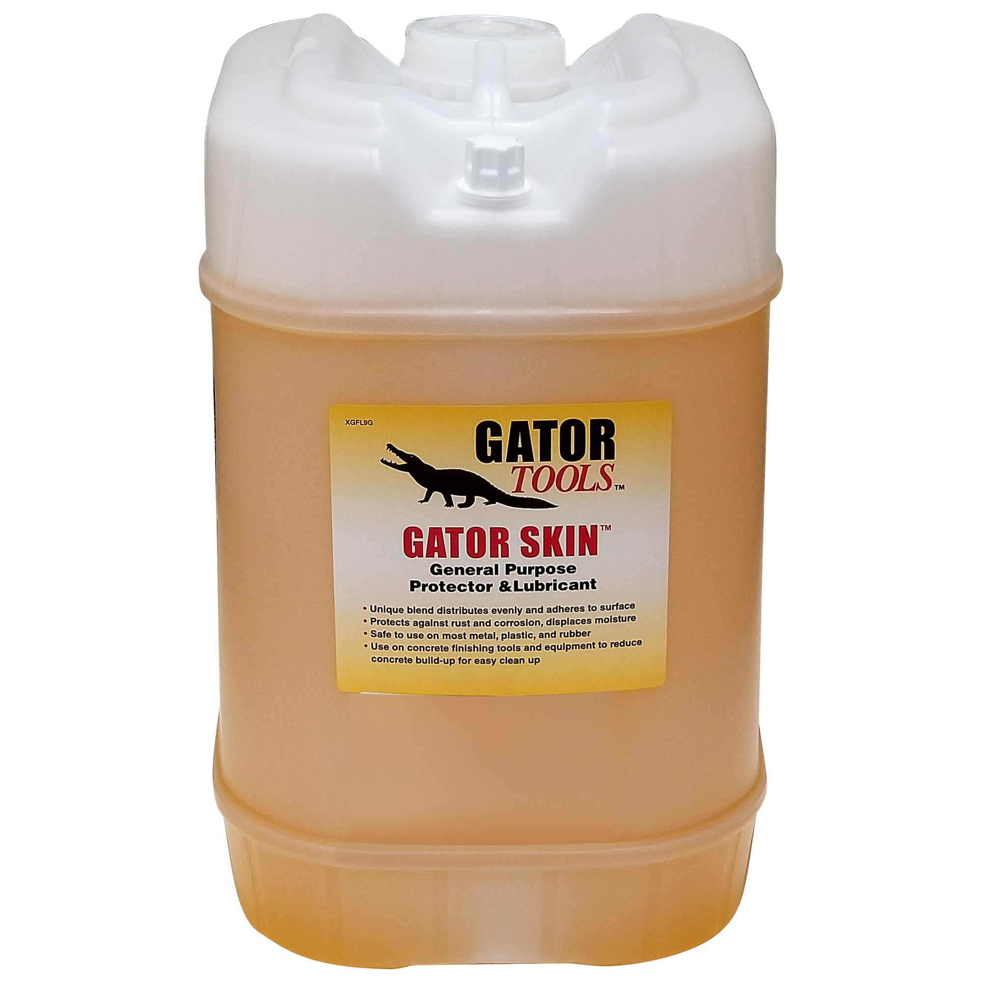 Formulated to lubricate, condition, and protect your concrete and masonry tools from rust and corrosion. Gator Skin™ is blended to disburse evenly and adhere to the tool surface. Before you use a tool, spray it down to prevent concrete build up, saving time during clean-up. This product is safe to use on most metal, plastic, and rubber surfaces. Test on a small area before coating entire surface. A great product to use on moving parts on hand and walking tools. May also be used as a general lubricant. This is a 5 gallon container.